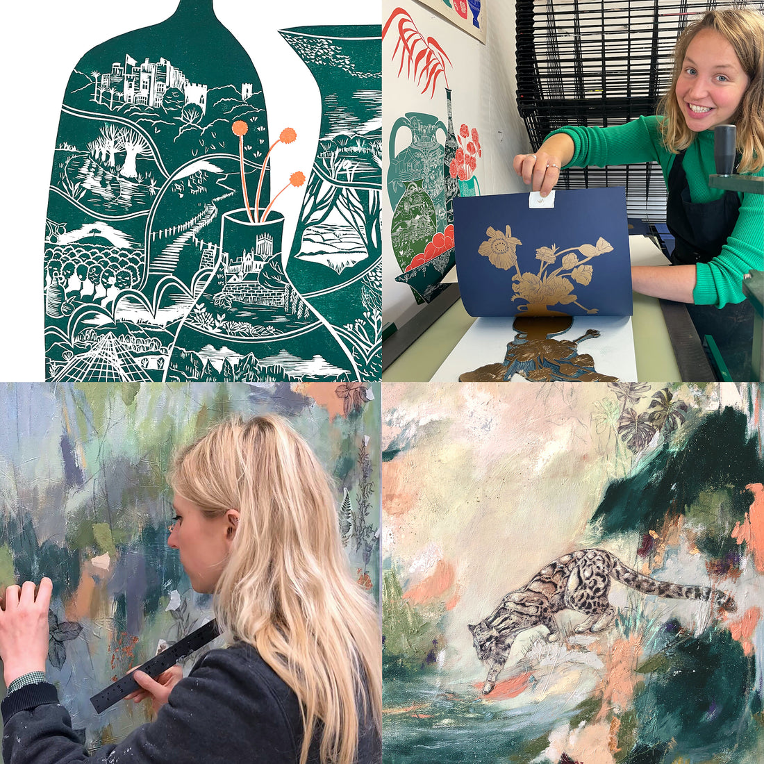 Both artists studied textile design as is apparent through their eye for composition and colour. The two of them came together a few years ago through a shared love of each other’s work, only to find they’ve formed a cherished friendship and now support each other in their lives and careers.
