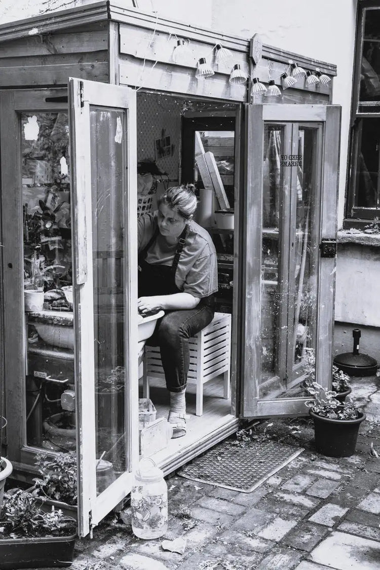 Sustainability guides every stage of Amelia’s practice. She chooses local clay to reduce transport impact and to stay closely connected to the raw material that shapes her work. In the studio, every scrap of clay is recycled, and water is continually reused to keep waste to a minimum. Although stoneware requires higher firing temperatures, its strength and longevity honour the energy invested in each piece. Amelia’s studio is furnished almost entirely with second-hand tools, and all shelving, throwing bats and drying boards are made from reclaimed wood salvaged from skips. Her practice prioritises thoughtful resource use, transparency and long-lasting craft - values that align closely with Prior’s ethos.