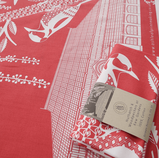 Ashley's prints use oil based inks on to 100% cotton paper. Prints are embossed by hand using three etching presses. Tea towels are screen printed with environmentally friendly inks and made from a heavy weight luxury panama cotton.