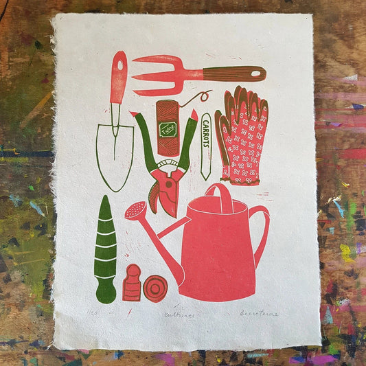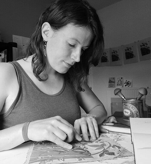 Becca creates hand-printed illustrations using the traditional, slow and unpredictable techniques of linocut, silkscreen and wood engraving. Bristol-based, she is inspired by travelling through beautiful and wild places, from English beaches to New Zealand mountains.