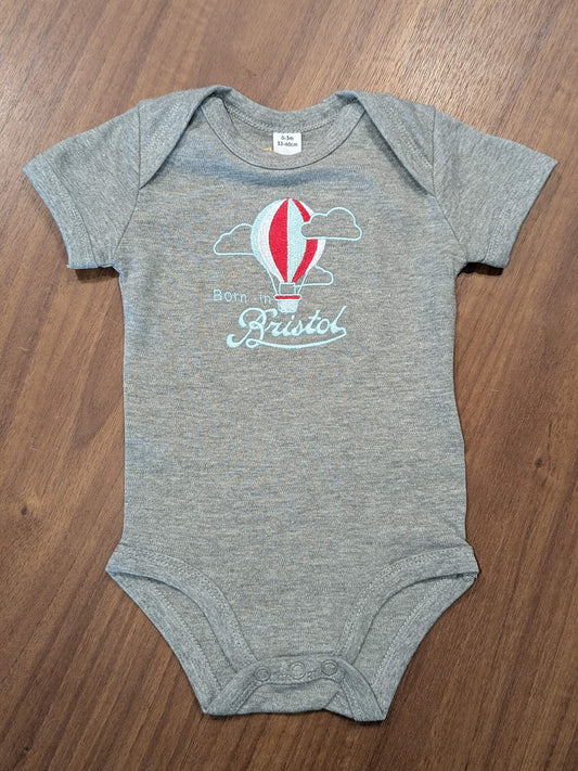 Born in Bristol | Grey | Baby Bodysuit with Hot Air Balloon (multiple sizes)