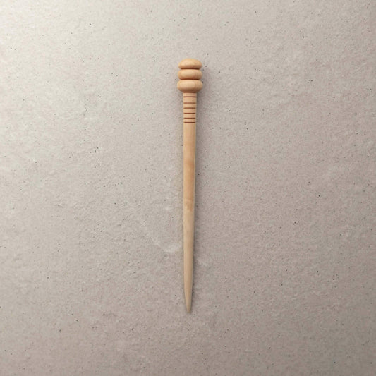 Native slow grown species are sourced from local tree surgeons and offcuts from local furniture makers. Freja designs to make the most effective use of this beautiful natural product. Earrings are made from the offcuts of hairpins, which are made from the offcuts of bowls.
