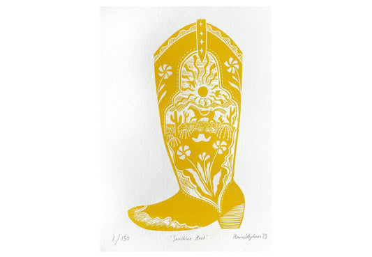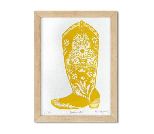 Sunshine Boot - A4 Original Lino Print - Limited Edition (Framed or Unframed)