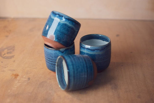 Red Stoneware Yunomi Cup with Mottled Blue Glaze