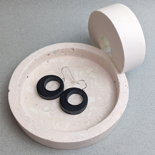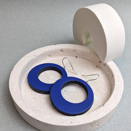 Recycled Leather Earrings - Medium Hoops (various colours)