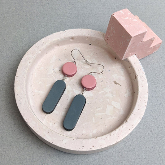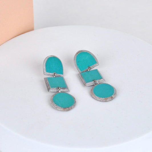 Recycled Leather Earrings - Bloc Rectangle Drop