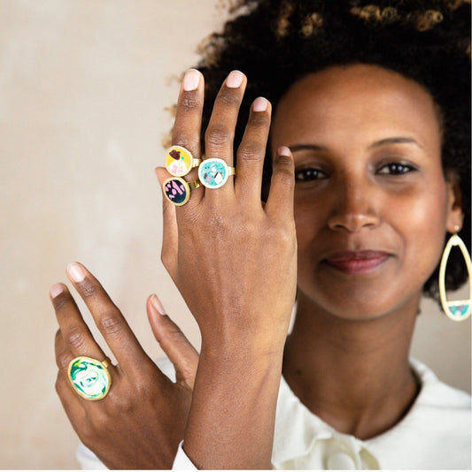 Jewellery that celebrates pre-loved materials, and transforms them into wearable works of art. We love witnessing the ingenuity of our makers who recycle and reuse materials that have sentimentality and meaning imbued into them.