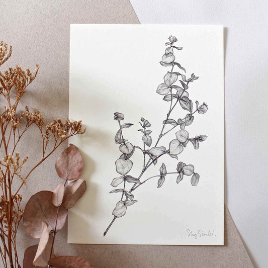 Sky keeps her making process as low-impact as possible — producing prints in-house using giclée methods, packaging everything plastic-free, and using recycled materials where she can.