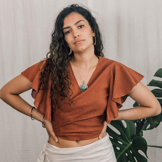 Tops that wrap around your body, perfectly versatile and adjustable. Made from ethically-sourced materials that'll age beautifully.