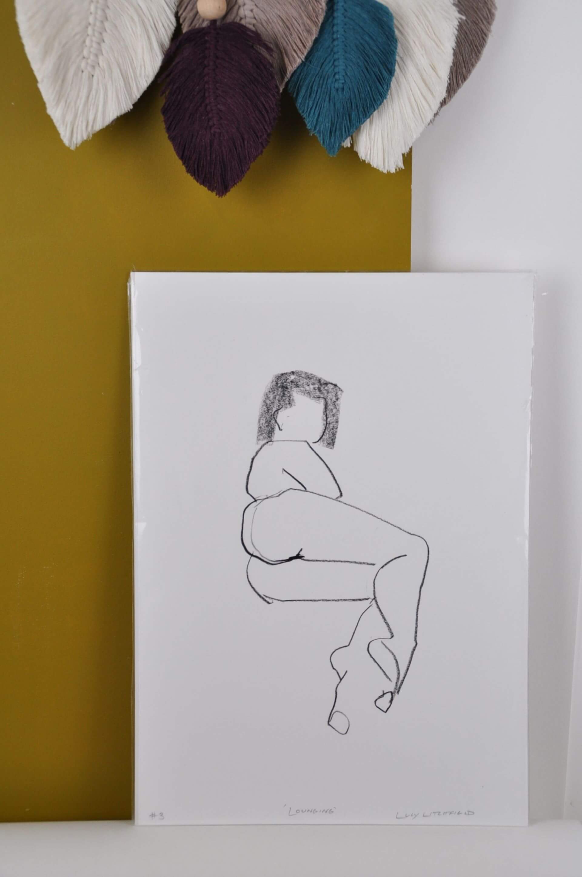 Lucy's sensitive life drawings are mixed-media prints, drawn using a combination of conte crayon, plants dipped in ink, and pencil.