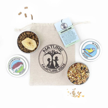 This duo Animal Food Kit has everything you need to give a little support to hedgehogs and birds. The kit comes in a handy eco-friendly drawstring bag that can be comfortably carried by young people on a nature walk. Each feed has been carefully selected specifically for wild hedgehogs and wild birds.