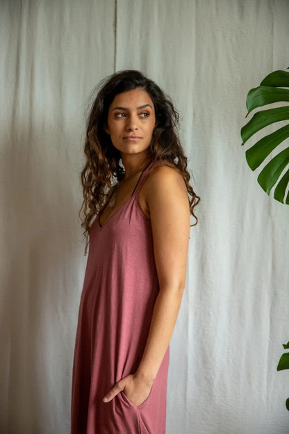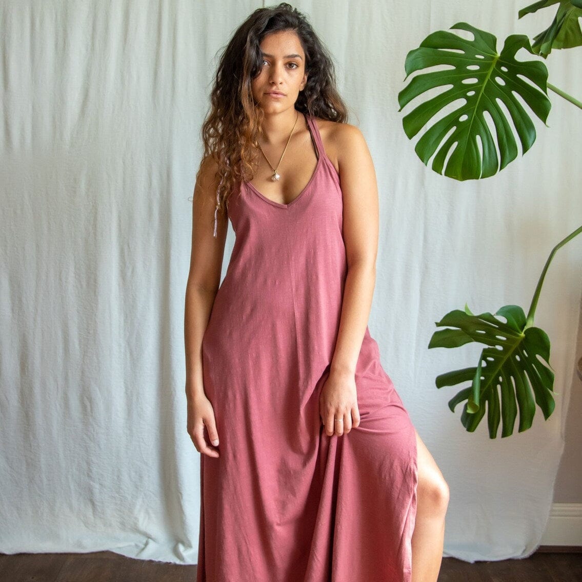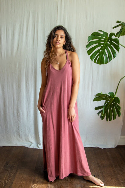 Inks Free have brilliantly combined comfortable casual wear with a very stylish cut on this long flowy dress. Featuring a hand printed cross back design and pockets, and open slits on both sides, this dress is perfect for every day wear and can be dressed up as well.