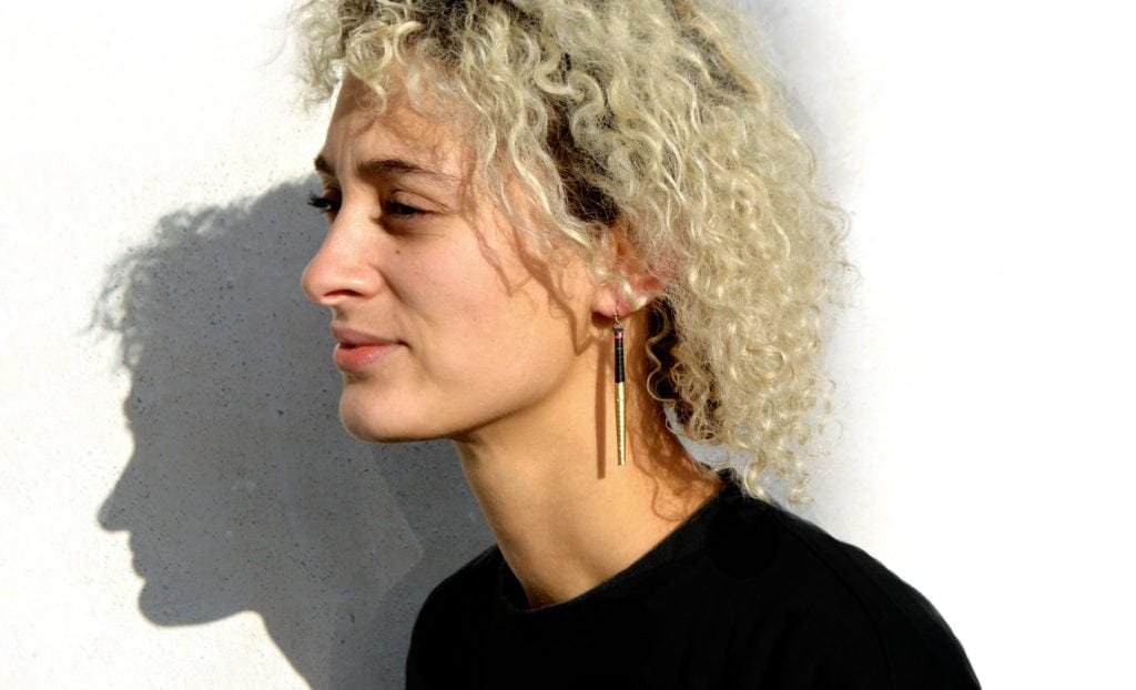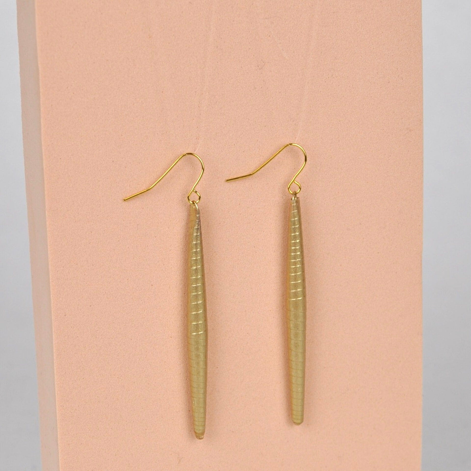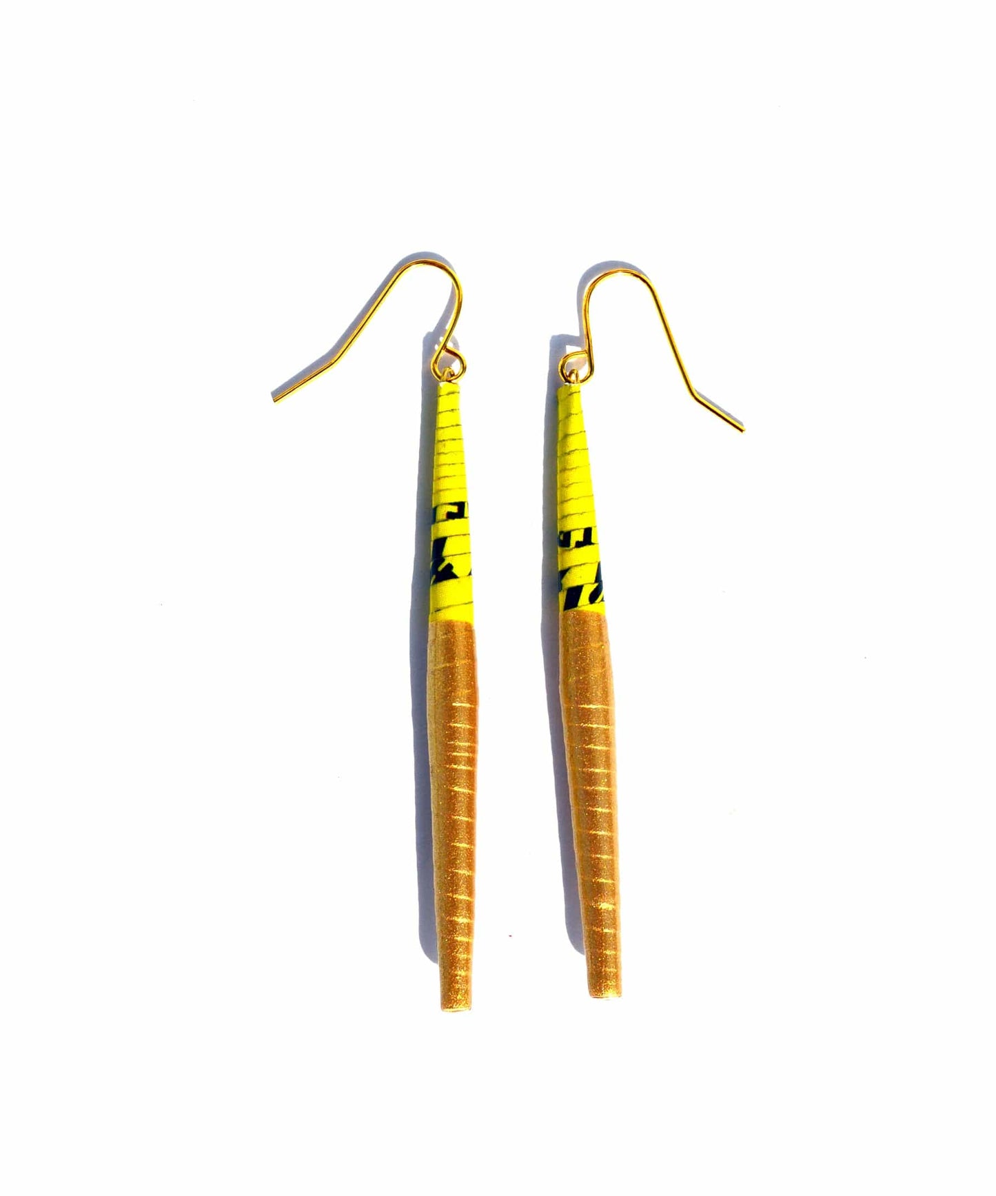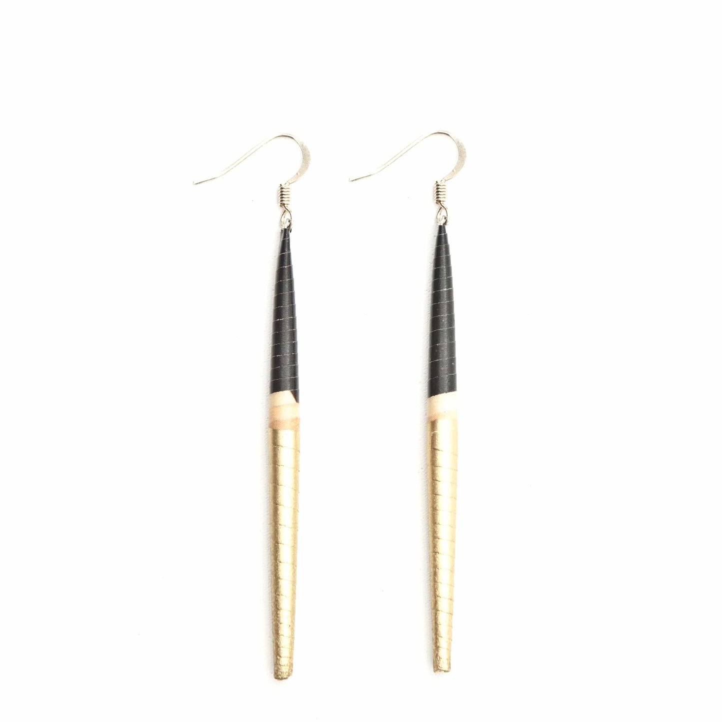 Beautiful handmade paper bead earrings from sustainable brand Quazi, dipped in gold paint and varnished for durability. Perfect everyday earrings, easy to wear, light and original.