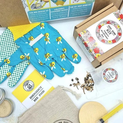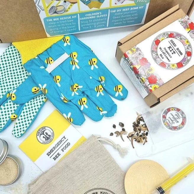 This is the ultimate gift and school holiday kit for engaging young children with nature. This kit enables them to make their own seeds bombs and grow flowers, plus everything they need to revive tired bees.