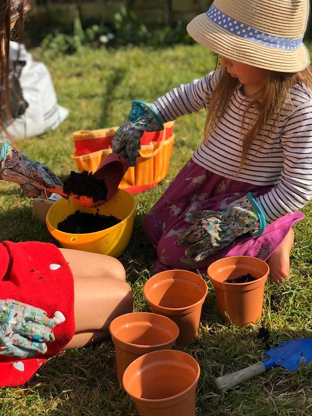 Bee patterned children's gardening gloves. These are a perfect fit for little hands and are perfect for making Seed Bombs. For ages 3 – 8 years.
