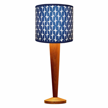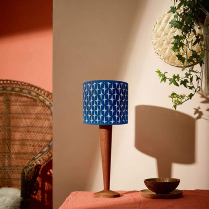 Part of Claire's Cyanotype collection. Individually hand-printed onto paper under the summer sun and developed in a water bath. This classic drum shaped lampshade fits with both sizes of her Wick lamp bases and whilst also working well as a pendant shade hanging from above.