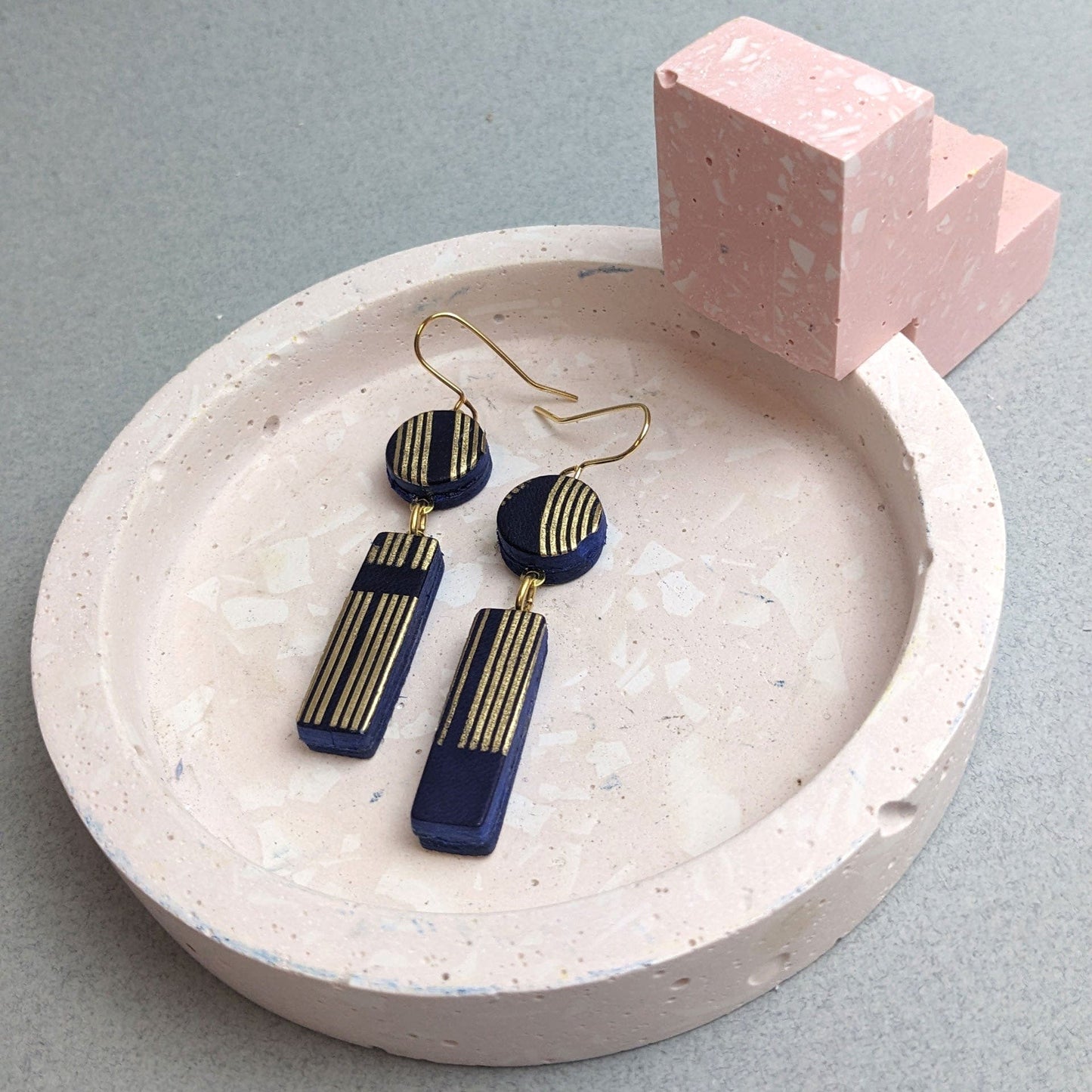 These eco friendly earrings are sustainably made using leather that is surplus material from industry waste.
