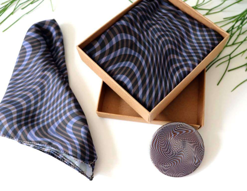 This elegant accessory is perfect as a sophisticated pocket square for men or as a chic small scarf for women. Its smooth, eco-friendly bamboo silk fabric adds a touch of refined luxury to any outfit. It also comes with a sleek, magnetic bottle opener with a matching print, making it a practical and thoughtful gift for any occasion.