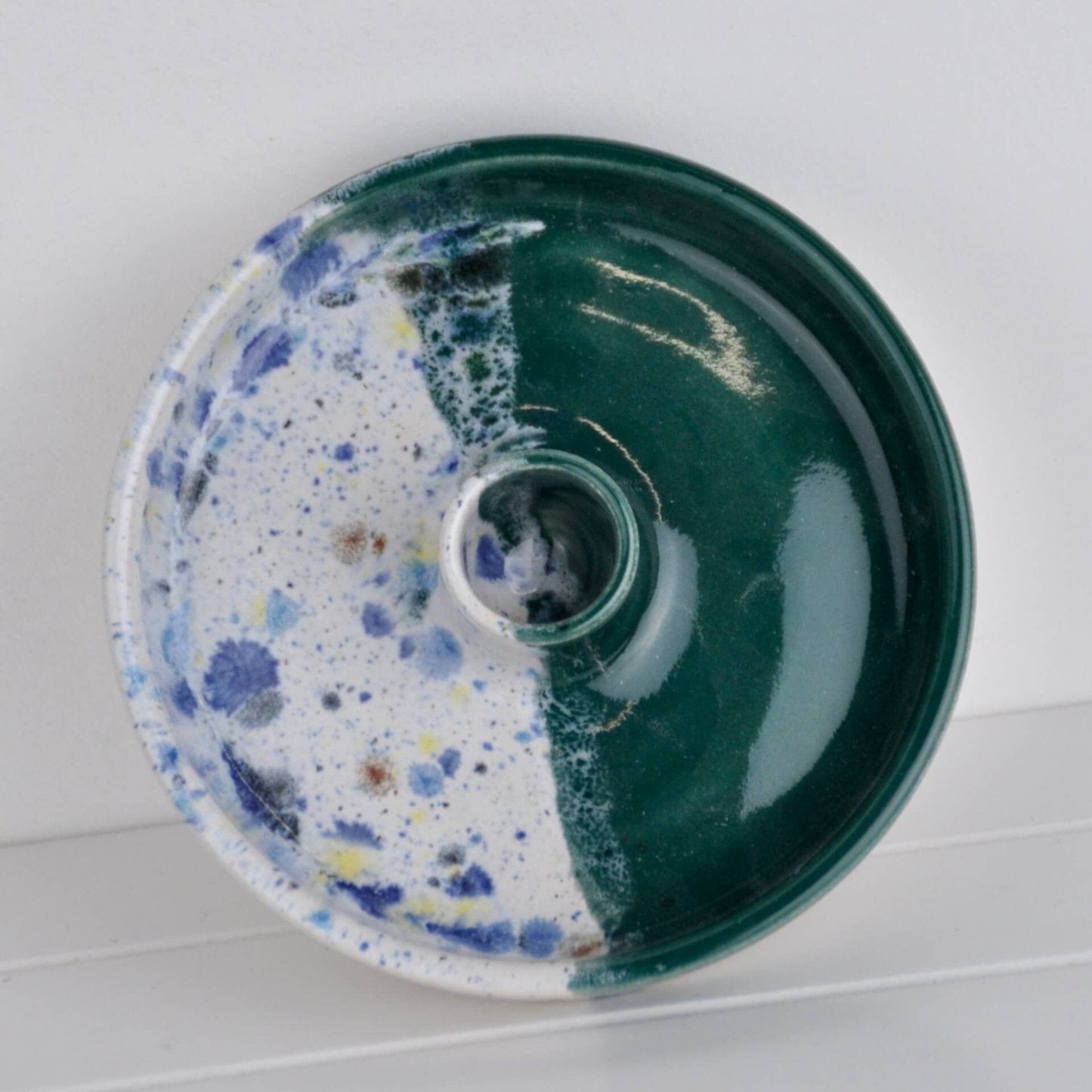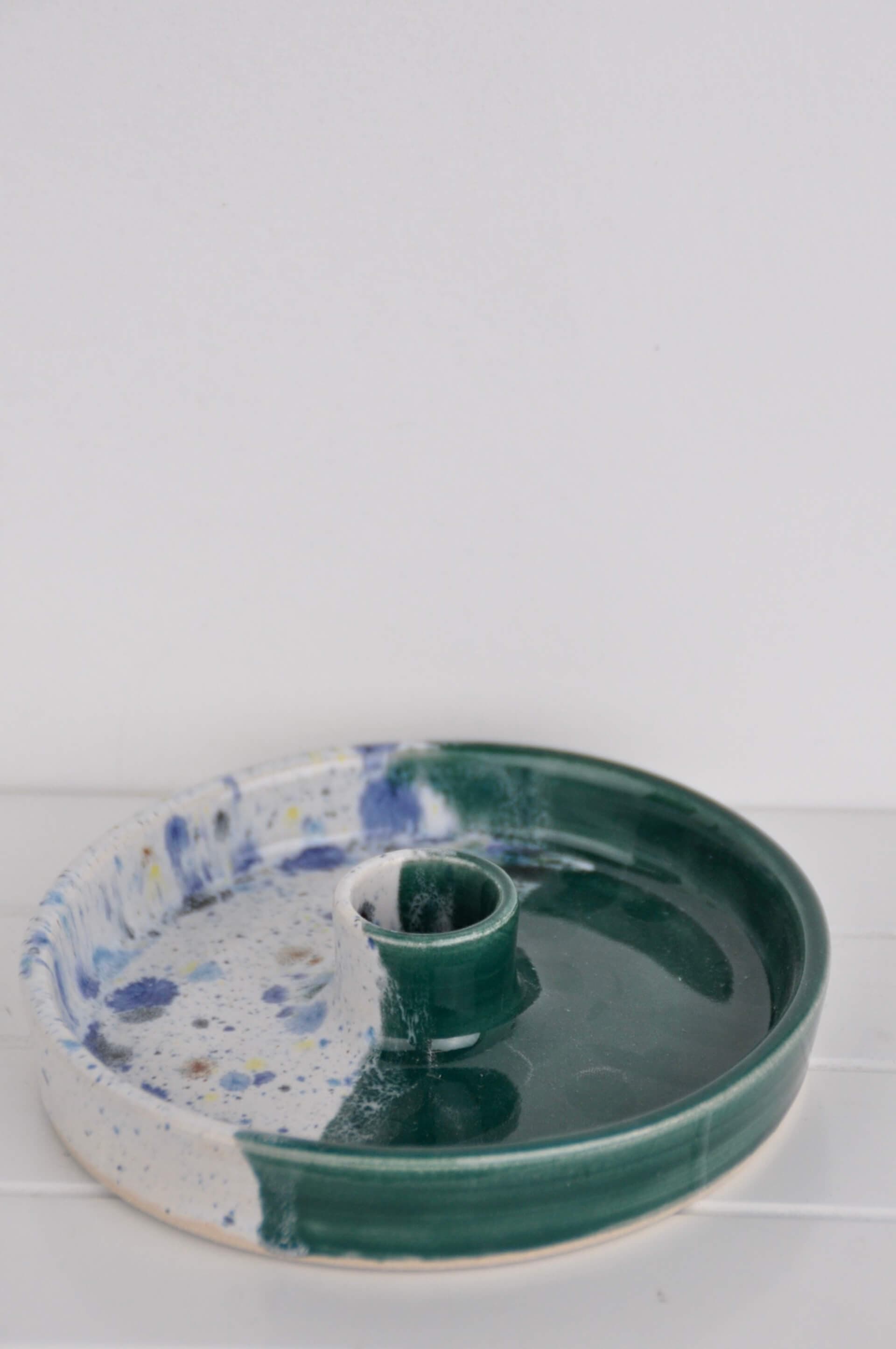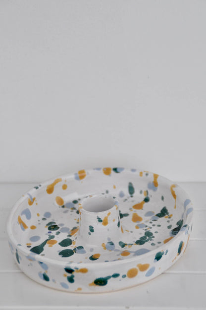 These vibrant stoneware candlestick holders are hand thrown by Edinburgh based artist and designer Ella Fletcher in her converted cow shed studio. They resemble an old fashioned type candlestick holder with a rounded bowl shaped base to catch the wax. Designed with Prior in mind the colours of the glazes are exclusive to us.