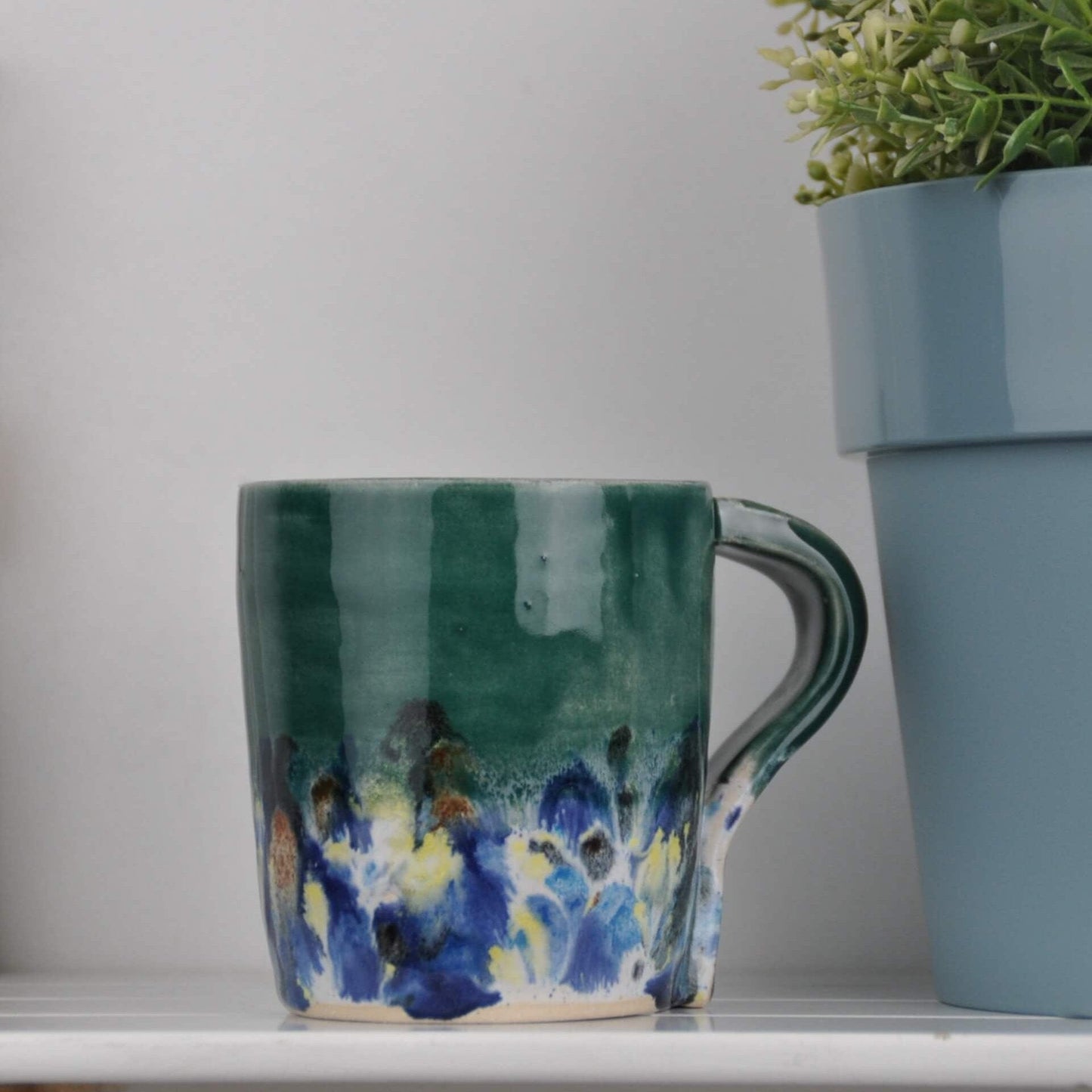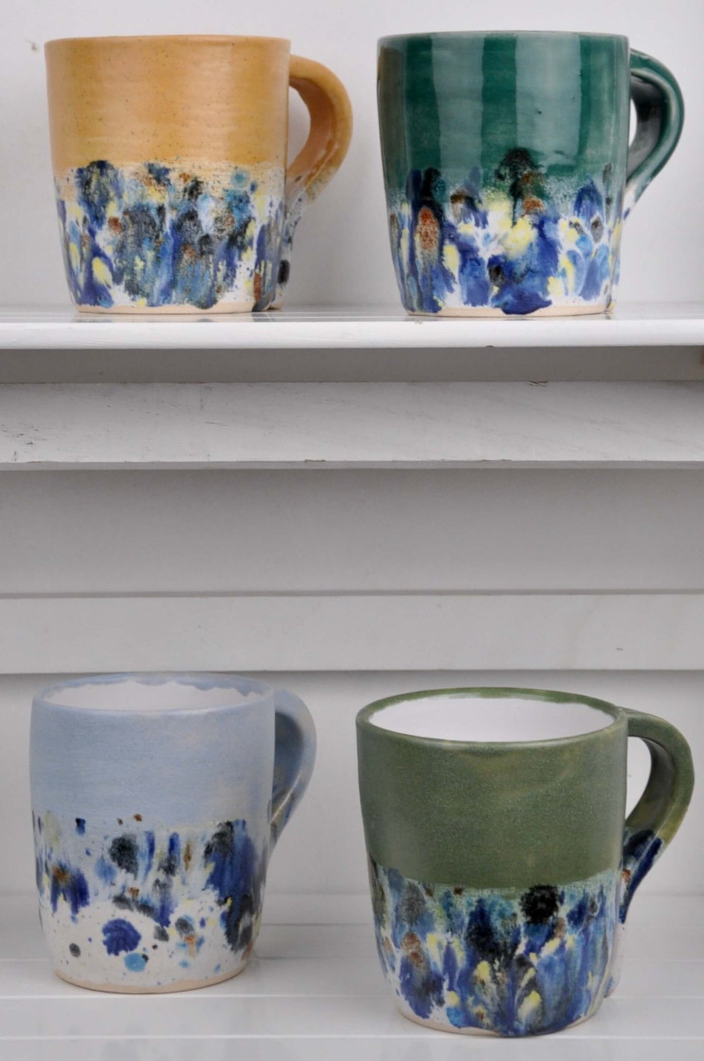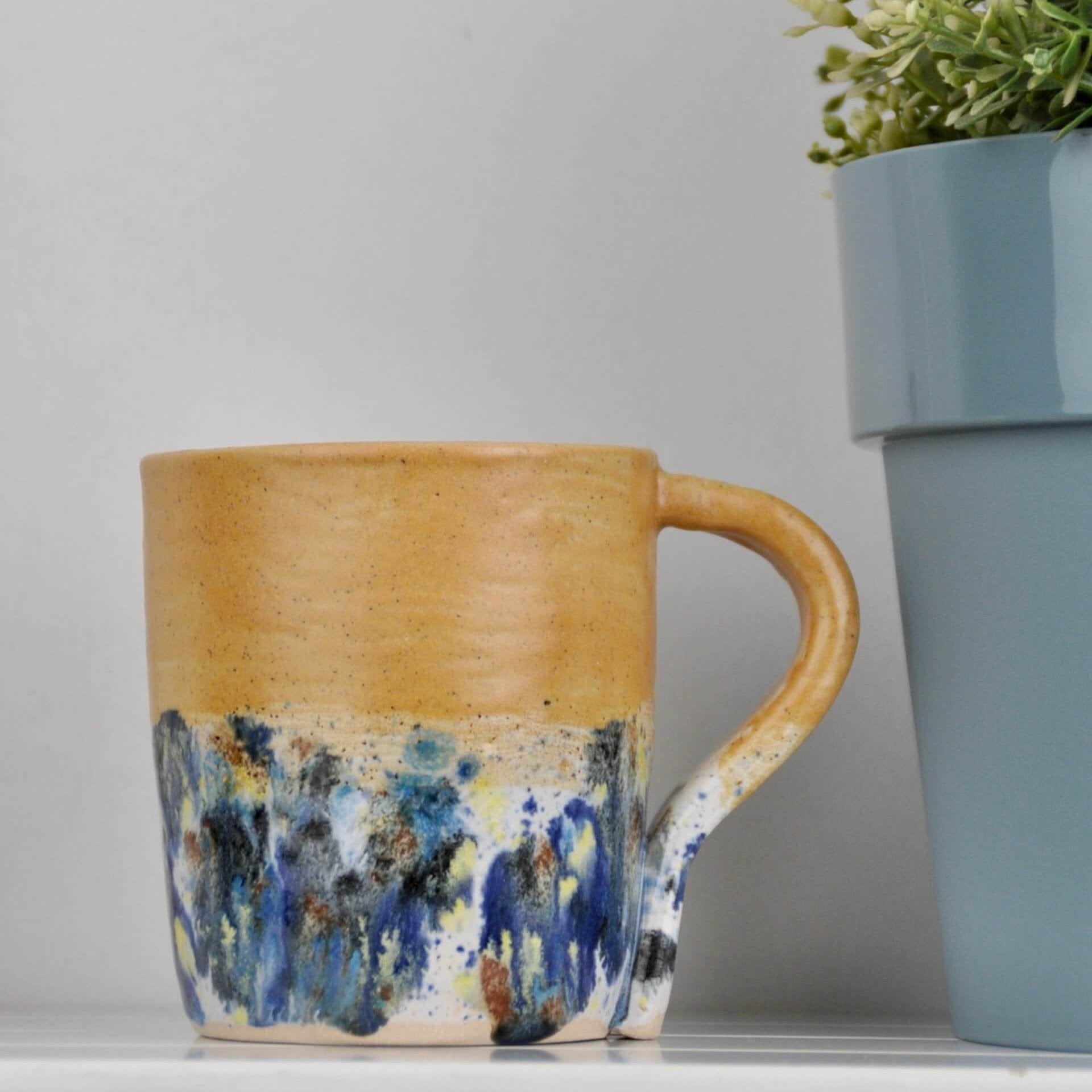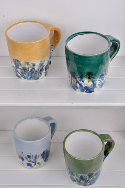 Ella hand throws all of her ceramics from her converted cowshed studio in Midlothian. These vibrant cheery cups are intended for everyday use and are both durable and practical, microwave and dishwasher safe!