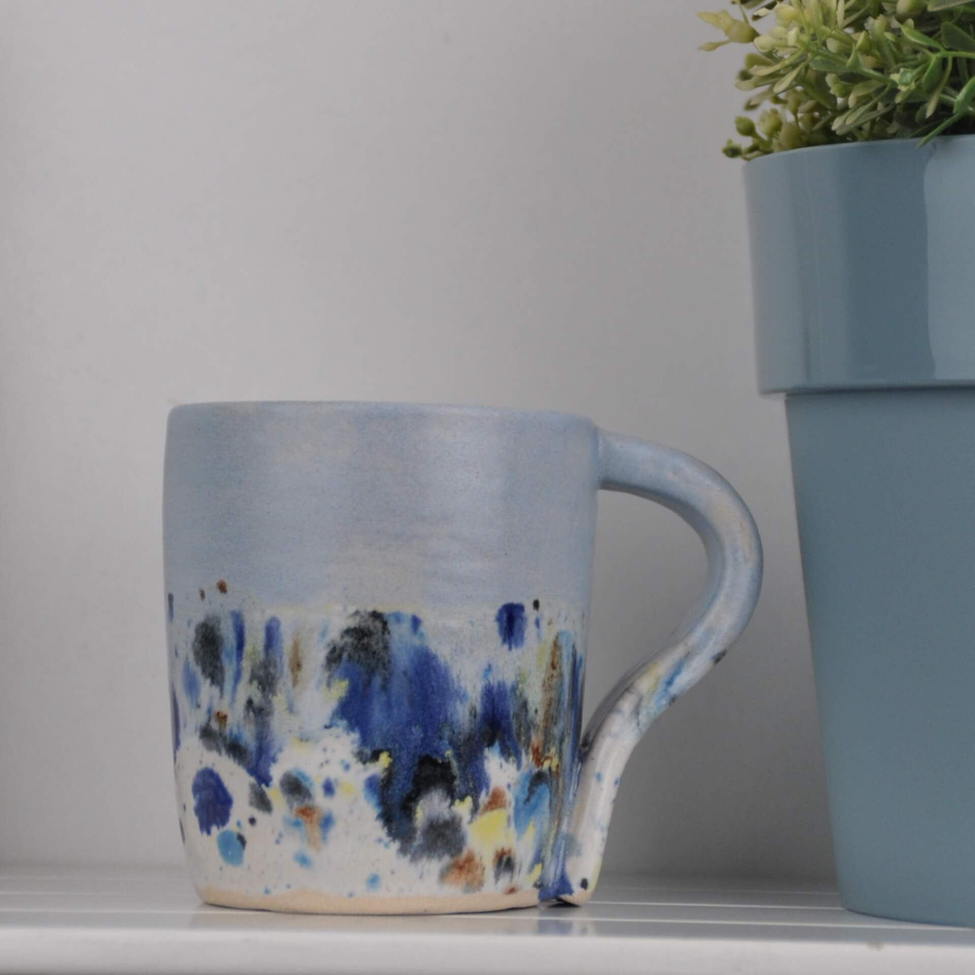 Ella loves vibrant colours and that is really reflected in her work, these cups are tall tea mugs with a choice of four glossy colours on the outside with a slightly speckled base and a lovely fresh glossy white on the inside.