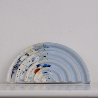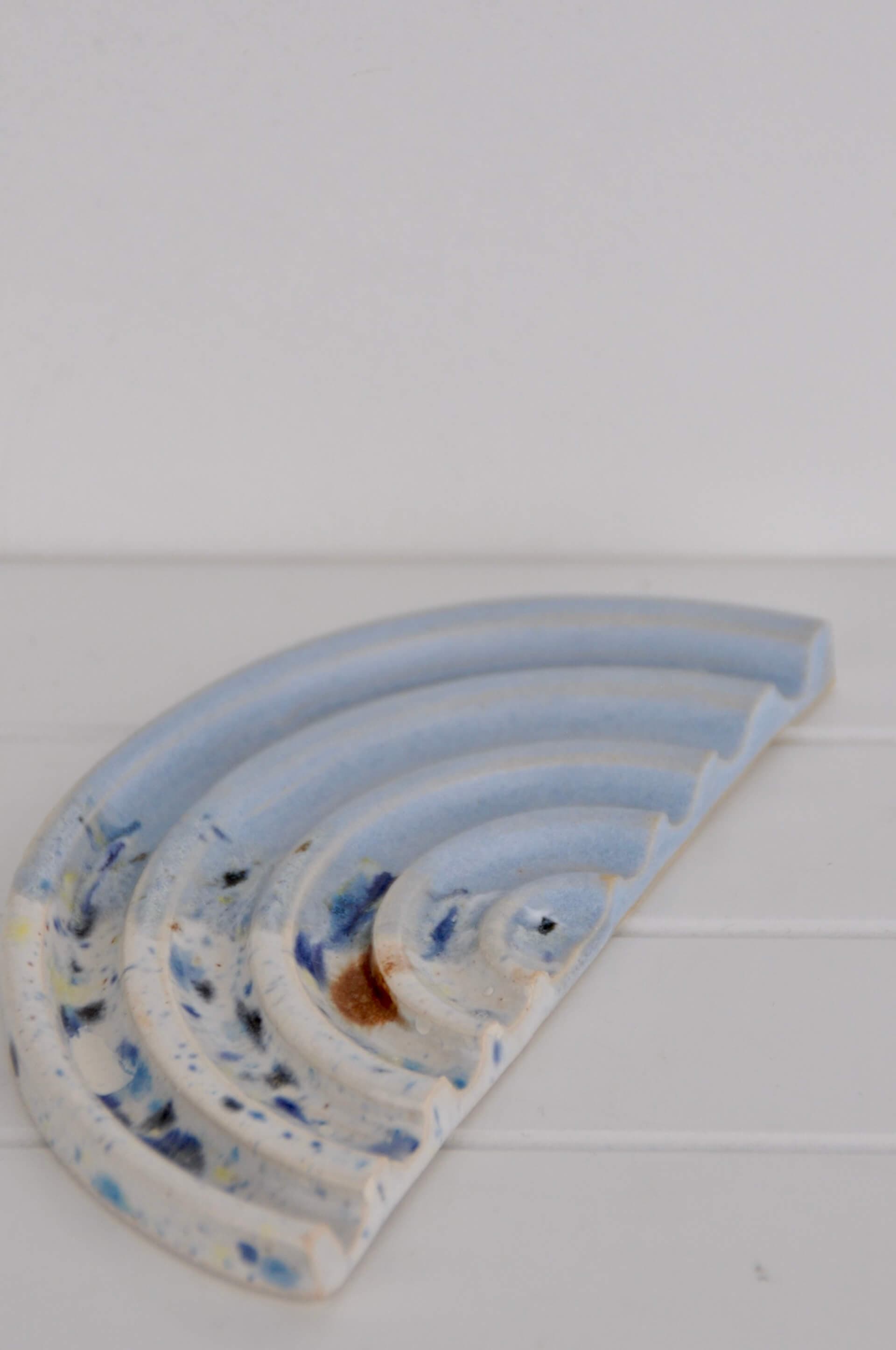 Semi-circular soap dishes with drainage ridges, hand made by sought-after artist Ella Fletcher. Both practical and unusual in design these stoneware dishes have lovely vibrant glazes and are incredibly appealing and popular - they get snapped up in no time!