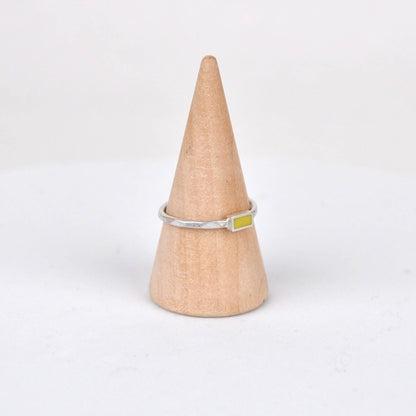 From Clare Lloyd comes this unique and simple hand-formed minimal silver ring with yellow triangle detailing. The piece can be paired with stacking rings for a bold look or worn alone as a simple statement.