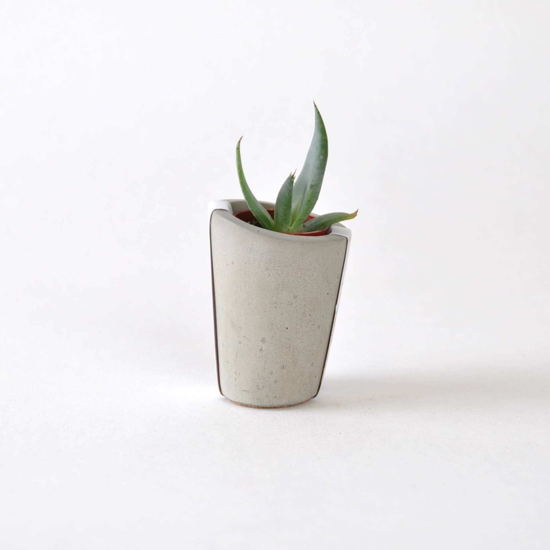 Handmade original, asymmetric, conical concrete mini vessel. Designed and made from start to finish by hand in the UK.