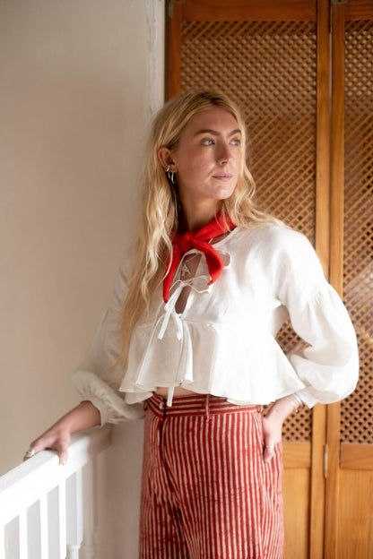 Introducing the Cornelia Top – a chic, cropped Spring/Summer blouse by Mahika Kala.