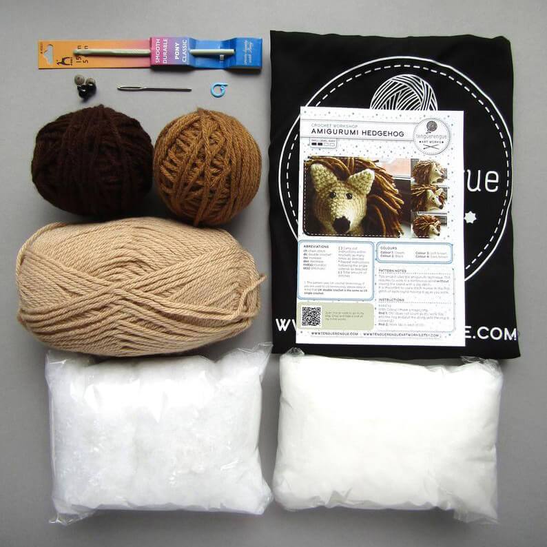 The amazing Amigurumi Hedgehog Crochet Kit contains all materials needed to create a super cute hedgehog from scratch.