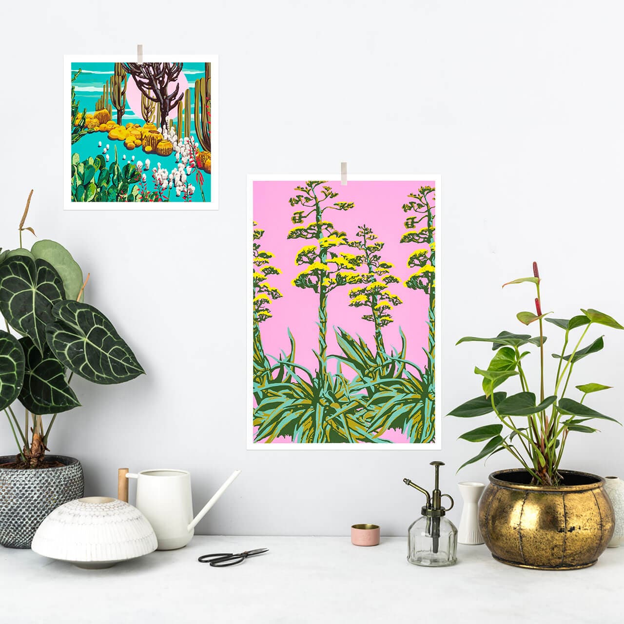 A striking artwork of Desert Agave using bold contrasting colour. Rosie wanted to incorporate some of the intensely bright colours found in Mexican art, textiles and architecture.