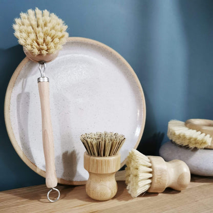 This beechwood dish brush head has bristles that are made from the Sisal succulent, and the metal part of the handle is recycled stainless steel. This handy dish brush removes tough stubborn food so they are perfect for pots, pans, crockery and cutlery. They are strong and effective without being too abrasive on more delicate surfaces. Made from bamboo and Sisal succulent plant fibres they are a great way to cut down on plastic use in your kitchen.