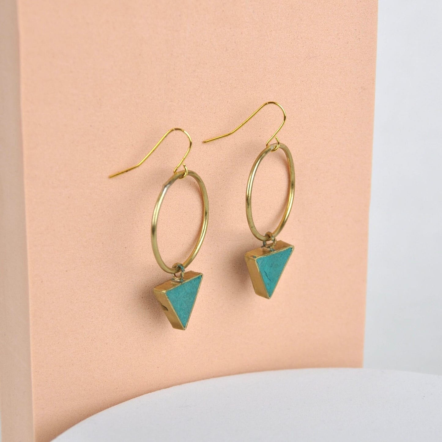 Beautiful handmade paper magazine earrings using Quazi's rolled bead and pulp technique. Using only 100% waste magazine paper and varnished for durability, these unique earrings are made to last.