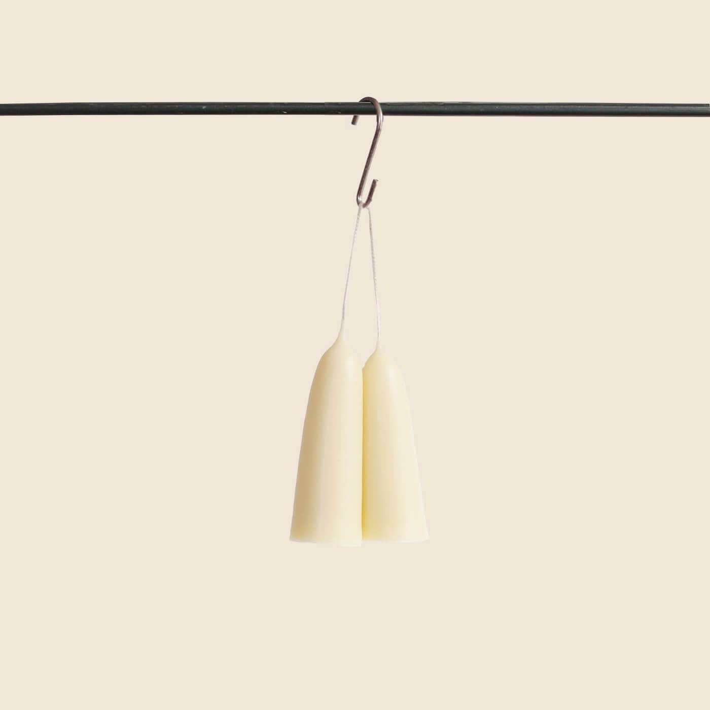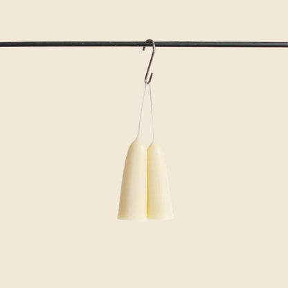 Hand dipped by Wax Atelier in their London based studio using traditional methods, these candles can only be made in very small batches. Using 100% beeswax and natural wax dyes - this variety is pure white beeswax which gives it that milky, off-white colour.