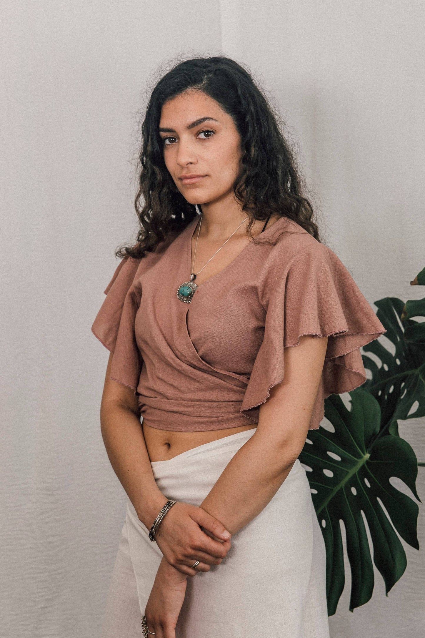 A beautiful raw cotton wrap top from Inka Free - clothing designed for both comfort and joy. A great design means that it'll fit many different body shapes - the wrap feature meaning it can be pulled tighter or looser depending on desired fit.
