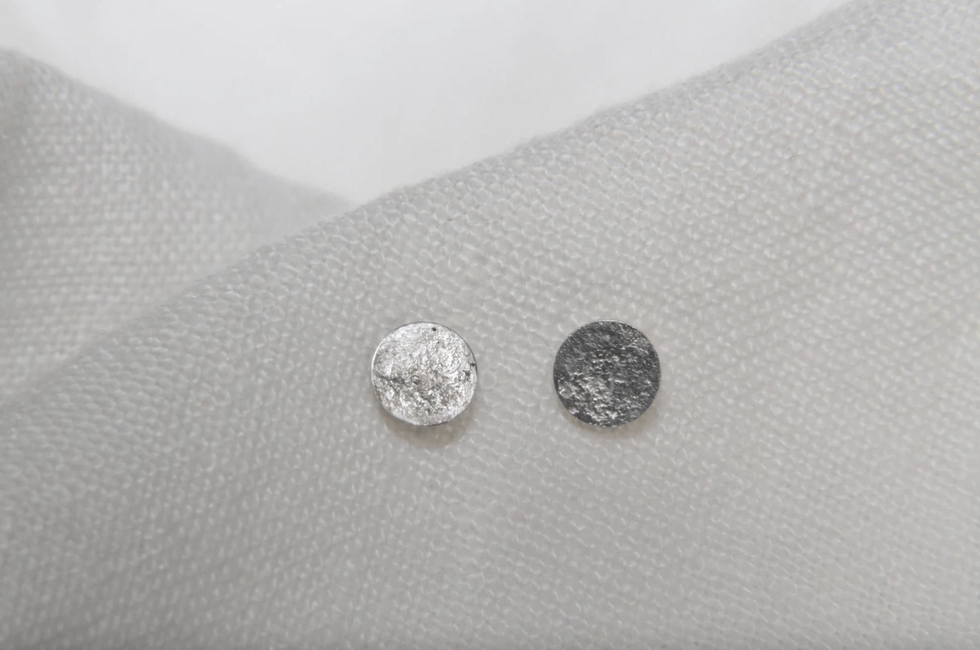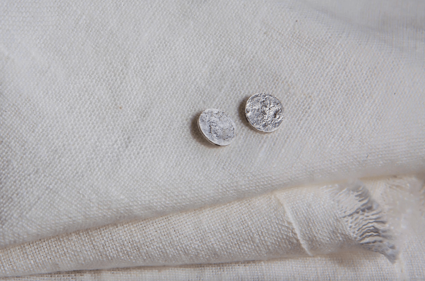Round silver textured studs made using recycled silver. The texture is created using a process called reticulation giving unique and one off textures every time, meaning that each pair is different. Perfect earrings for everyday wear and for those wanting a slightly bigger stud.