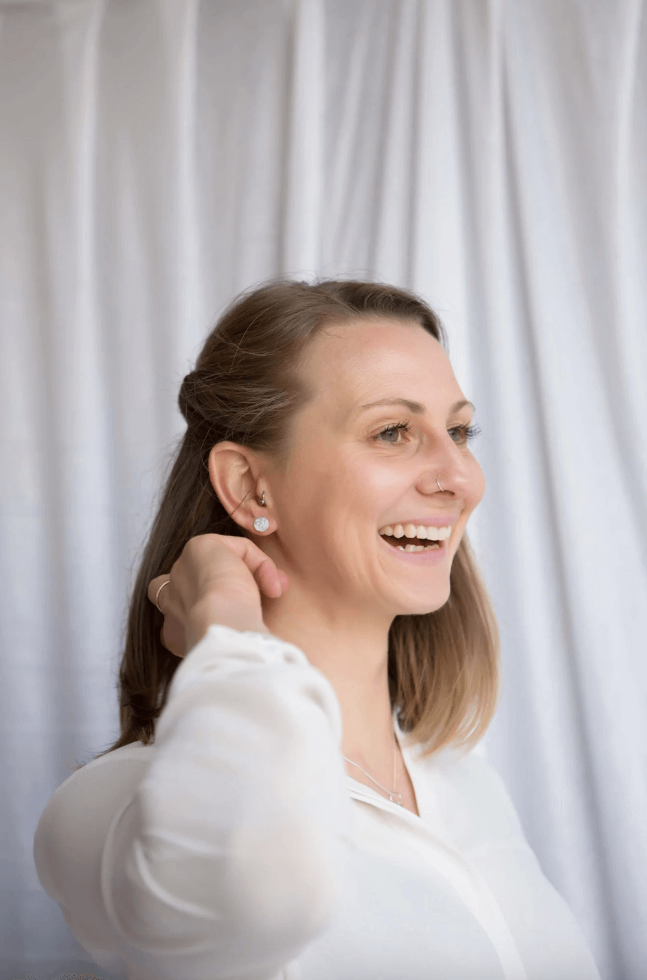 Beautiful recycled silver round moon studs handmade by Bristol maker Lucy Lane Jewellery