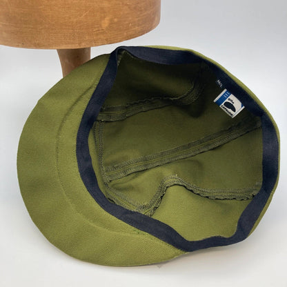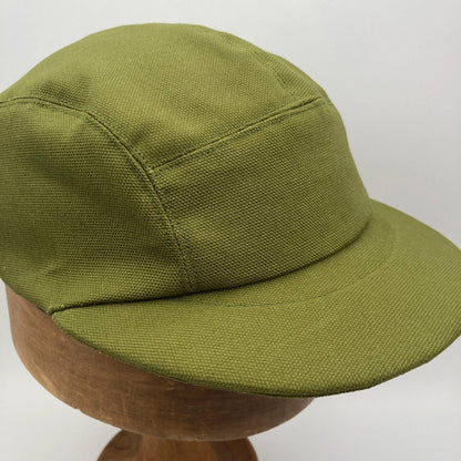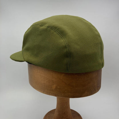 Olive Panel Cap handmade with organic cotton canvas in West Yorkshire. A perfect modern cap available in various colours and sizes, a great little hat that is stylish and sustainable.