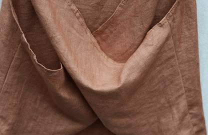 Natural dye on natural fabric can sometimes have an uneven colour. This is due to the natural elements of all the ingredients, the natural oils, and unbleached surfaces. We choose to stock only naturally dyed fabric because it’s better for people and the planet, and we quite like the unique variations that occur in each garment.