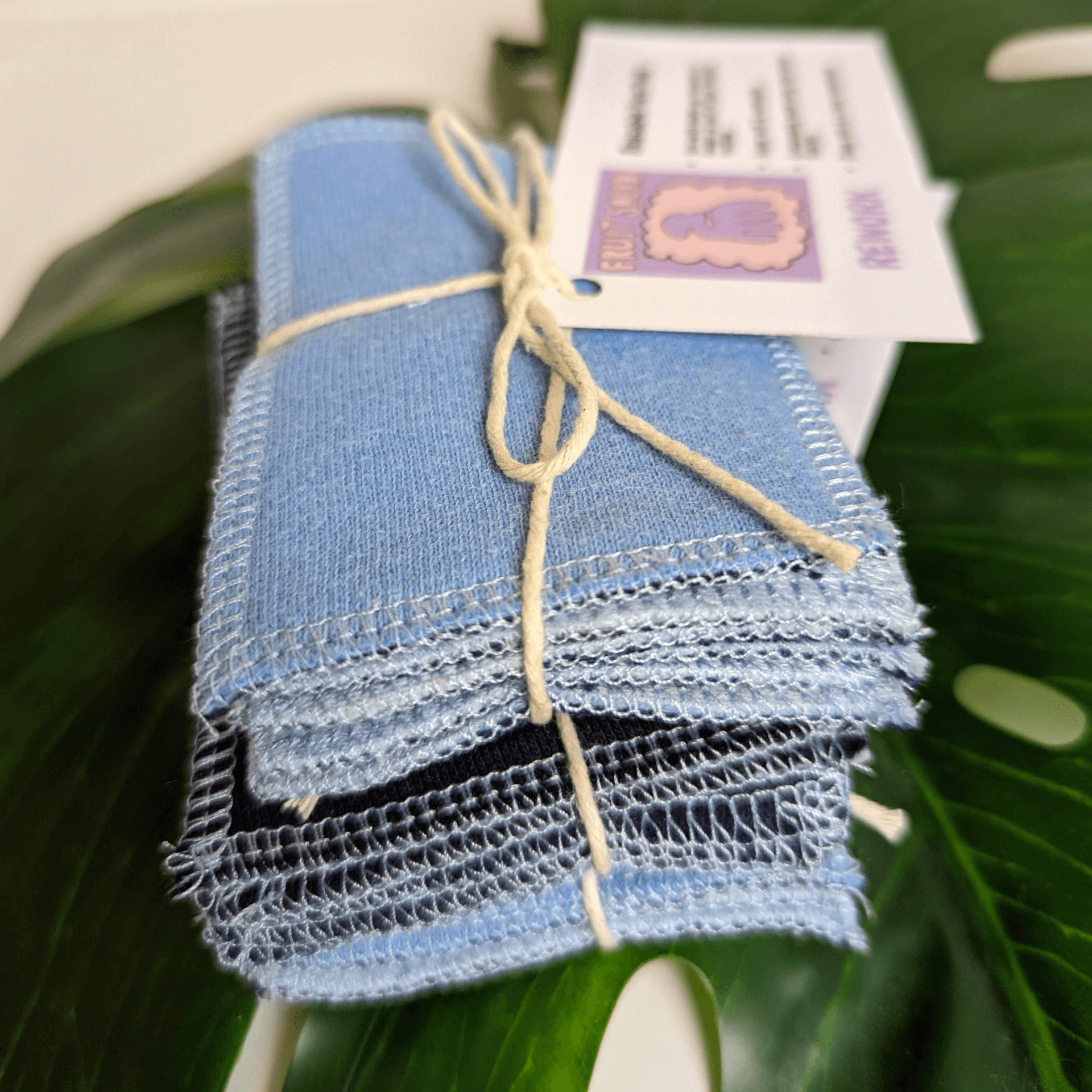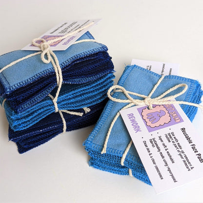 Enjoy clean skin and a clear conscience with these super soft, reusable, washable face pads in gorgeous blue hues.