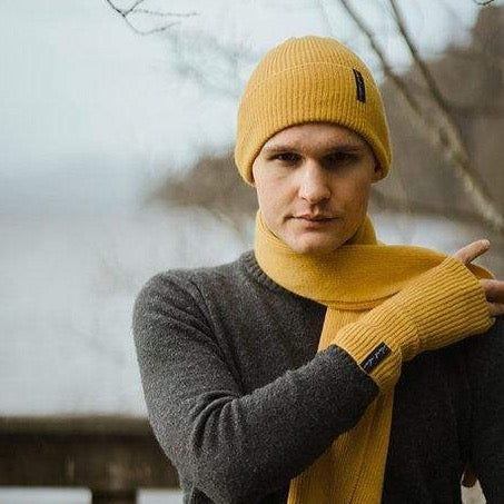 In a beautiful and classic mustard colour, the warm hat comes in one size, (should fit most people).