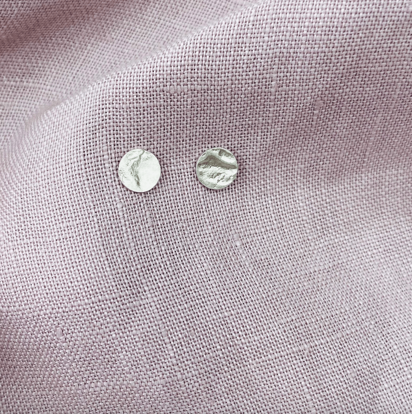 Small round silver textured studs made using recycled silver. The texture is created using a process called reticulation giving unique and one off textures every time, meaning that each pair is different. Perfect earrings for everyday wear and for those wanting a slightly bigger stud.