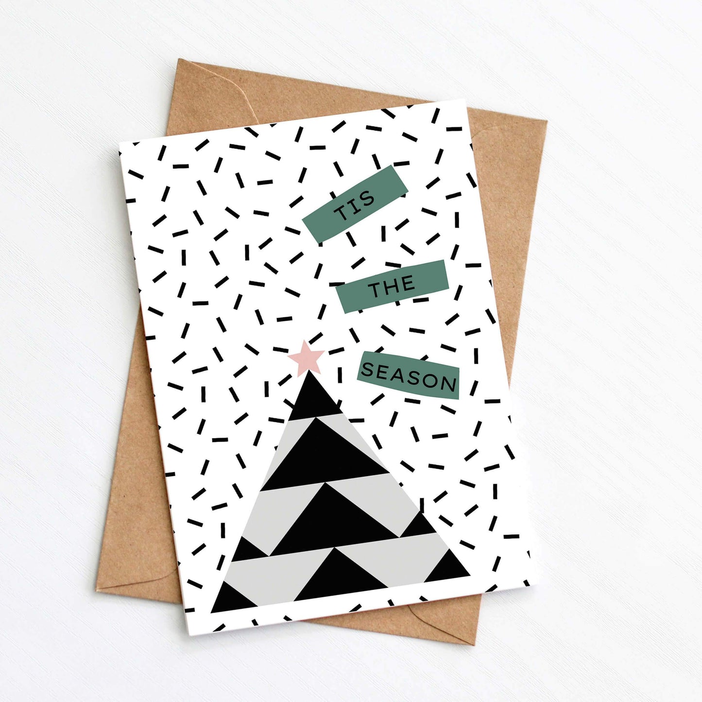 Contemporary and chic Christmas card with geometric pattern and 'Tis The Season' message.