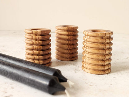 Please note - each candle holder is unique in size, grain and colour. Due to working with a natural material, it is impossible to have an identical pair.